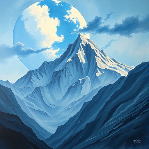 Această pictură vibrantă, realizată de un copil cu autism, prezintă un peisaj albastru, captivant și plin de emoție. În centrul compoziției se înalță un munte, stilizat, cu nuanțe variate de albastru care reflectă imaginația pură și sinceritatea creatorului. Fiecare tușă de pensulă pare să exprime un sentiment de liniște și libertate, invitând privitorul să exploreze adâncurile acestui univers personal.